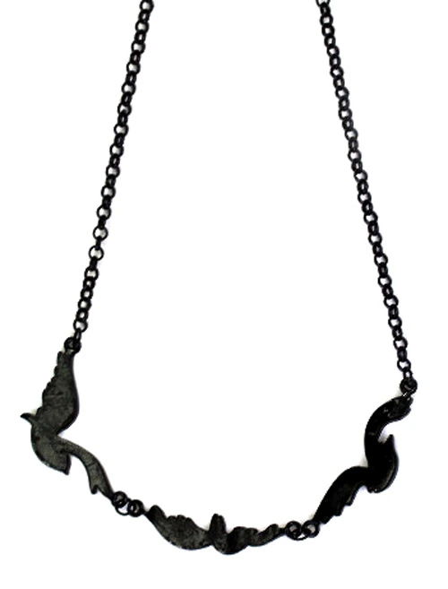 - Collier mi long avec trois oiseaux noirs